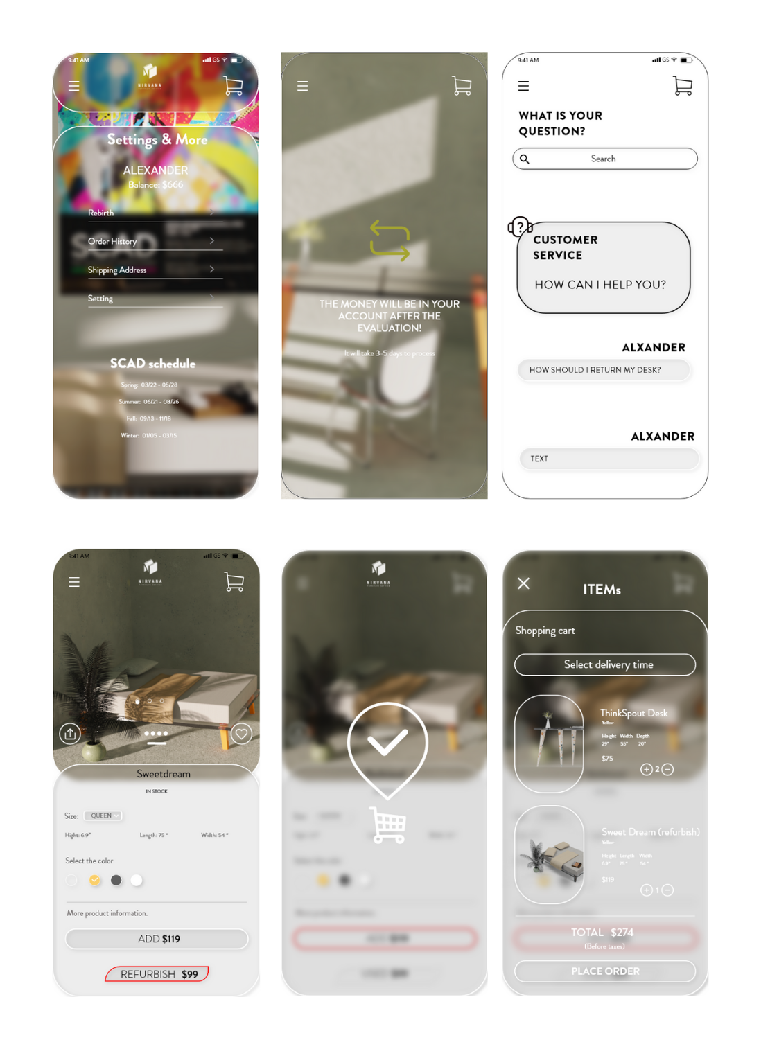 The application is designed to help users browse and purchase our furniture, as well as provide service related to the delivery and re-birth of furniture.